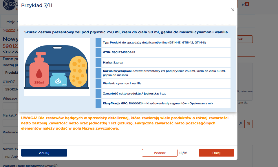 Przykład dla kompletu produktów: