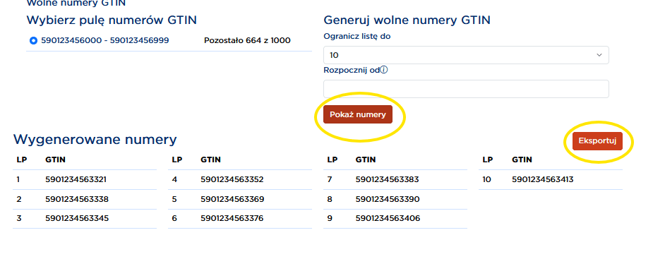 1. W generatorze wybierz pulę i liczbę numerów GTIN, które chcesz wygenerować.
