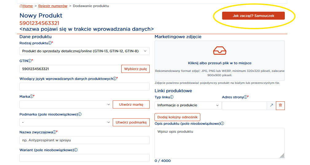 1. Uzupełnij informacje o produkcie:
